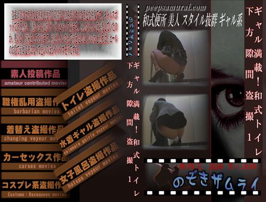 新作 盗撮師達には有名な某所和式便所の隙間から盗み撮りされた秀逸な映像です。ギャルスポットである為か、着飾った女達がドンドンとやって来ます。みんなトイレを我慢していたのか、勢いよく放尿をしております。和式トイレなんで用を足しにくいのかと思えば、ヒールのお陰で前傾姿勢になって思いのほかやりやすそうですね。 和式便所 美人 スタイル抜群 ギャル系 和物 無修正 盗撮 :のぞきザムライ